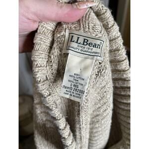 LL Bean Commando Sweater Henley Tan Knit Elbow Patches Mens Large Cotton