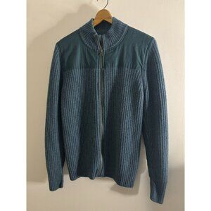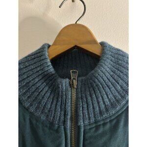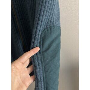 LL Bean Commando Sweater Womens M Reg Blue Green Merino Wool Full Zip Elbow Pads