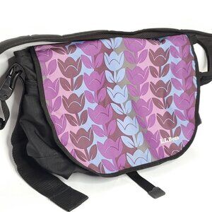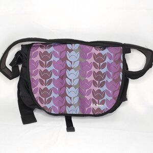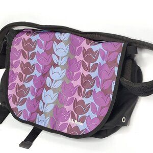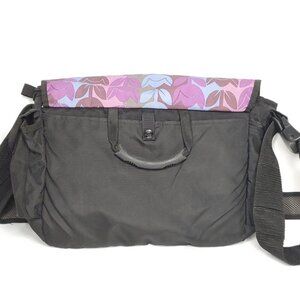 LL Bean Computer Messenger Bag Floral Black Purple Blue