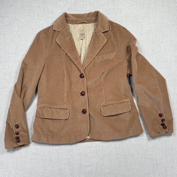 L.L. Bean Corduroy Blazer Tan Cotton Lined Three-Button Jacket Size 14 Reg