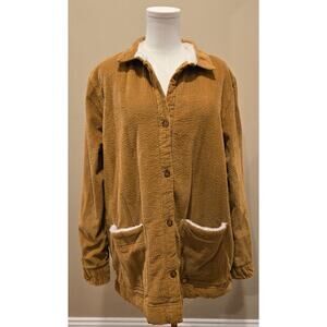 LL Bean Corduroy Relaxed Sherpa Lined Shacket Shirt Jacket Womens XL Brown
