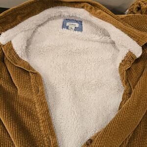 LL Bean Wide Corduroy Relaxed Sherpa Lined Shacket Shirt Jacket Womens XL Brown