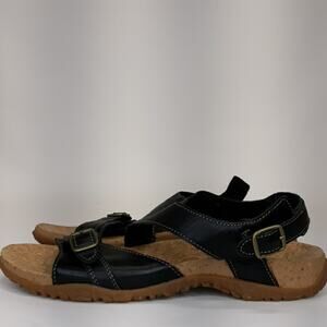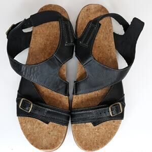 L.L. Bean Cork Foot bed Sandals Women's Size 11M. Black leather straps. Preowned excellent condition. No box.