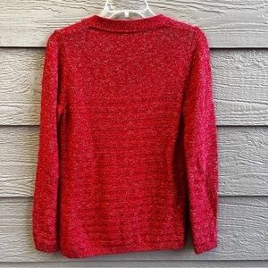 LL Bean Cotton Blend Cardigan Sweater Orange Buttoned V Neck LS Career Church