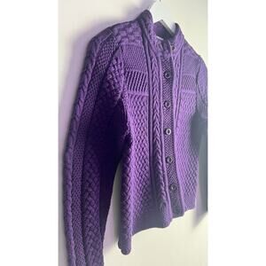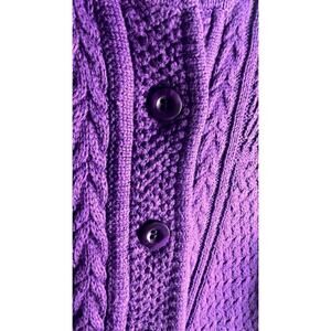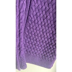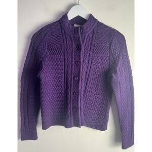 LL Bean Cotton Cable Knit Cardigan Button Up Sweater Jacket Purple Petite Sz XS