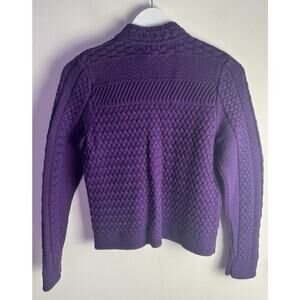 Wrap yourself in the cozy comfort of this L.L. Bean Cotton Cable Knit Cardigan. This purple, button-up sweater features a classic mock neck design, perfect for those crisp days. Its long sleeves and chunky-knit pattern provide not only warmth but also a touch of vintage appeal. Ideal for both casual and business settings, this sweater is a versatile addition to your wardrobe.