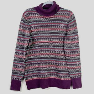 L.L . Bean Cotton Cashmere Fair Isle Turtleneck Sweater Size Medium
