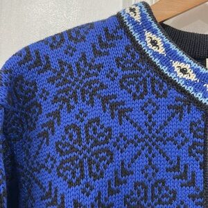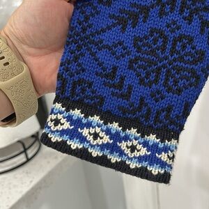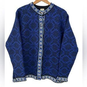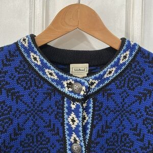L.L. Bean Cotton Nordic Chunky Button Up Cardigan Sweater in Blue/Black - L