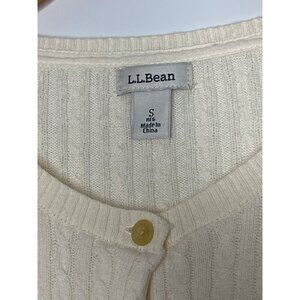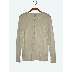L.L. Bean Cotton Wool Blend Cable Knit Button Front Cardigan Cream Size Small