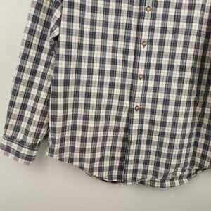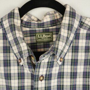 LL Bean Cream Blue Green Red Plaid Button Up Shirt Size Men's Medium
