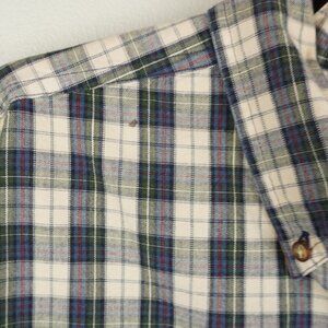 LL Bean Cream Blue Green Red Plaid Button Up Shirt