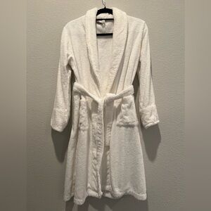 Soft and cozy robe. Features a tie belt and two pockets. Perfect for lounging.