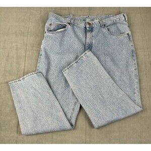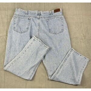 Men's L.L. Bean Double L Natural Fit denim jeans, tag size 40x32, actual size 37x30. One small stain on pant leg towards bottom - see last photo. No holes. Light wash. Measurements in photos. Smoke free home.