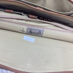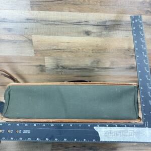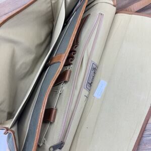 L.L. Bean Dowel Rod Canvas Green Business Travel Briefcase Shoulder Leather Bag