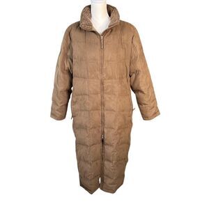 L.L. Bean Faux Suede Ultra Long Quilted Goose Down Parka Brown Size XL Petite
