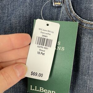 LL Bean Favorite Fit Flannel Lined Jeans Sz 16 Petite Red Buffalo Plaid - NWT