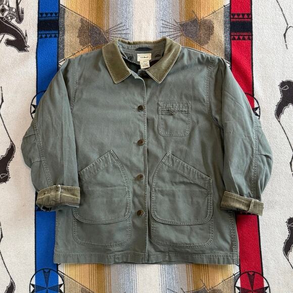 LL Bean Field Coat Womens Size XL Chore Barn Removable Wool Liner Green