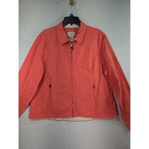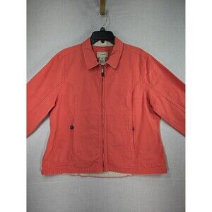 LL Bean Field Jacket Womens XL Coral Salmon Pink Canvas Cotton Zip Vintage 90s