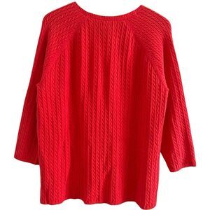 * LL Bean Fisherman Cable Knit Cardigan Sweater 2X Coral Plus Size Preppy Classic