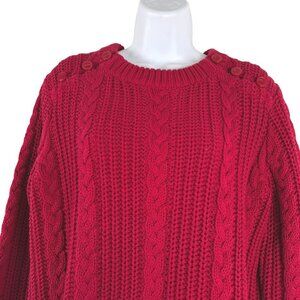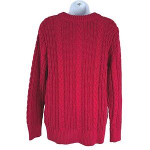 L.L. Bean Fisherman Sweater Womens Large Red Cable Knit Cotton Chunky FS-1317