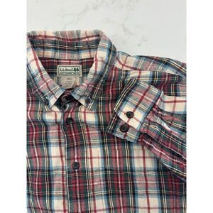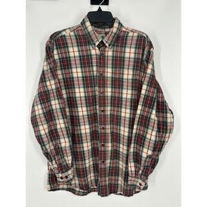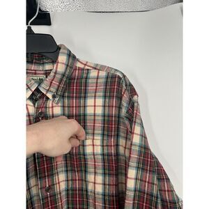 LL Bean Flannel Button Down Shirt Color Green Red Pocket Size Large Tall LT