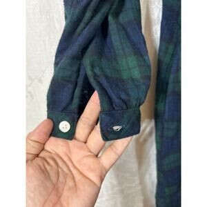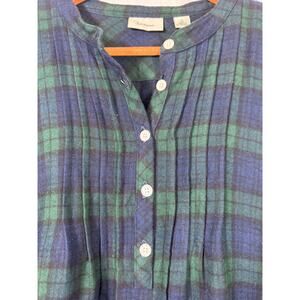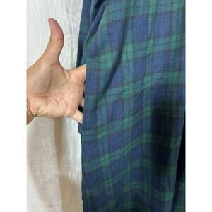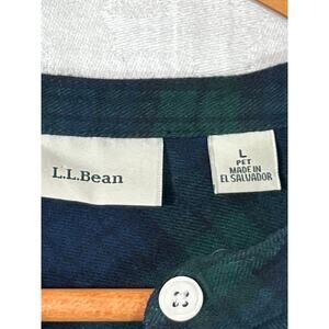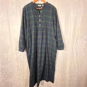 LL Bean Flannel Nightgown Large PETITE Navy Green Plaid Long Maxi Pockets
