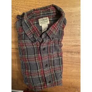 Ll bean large regular gray button down long sleeve 100% cotton flannel