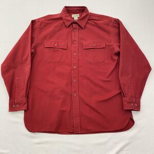LL Bean FlannelShirt Mens Large Red Long Sleeve Button Up Cotton Pocket