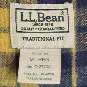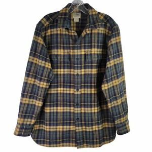 LL Bean Flannel Shirt Mens Plaid Button Down Long Sleeve Size Medium M Yellow
