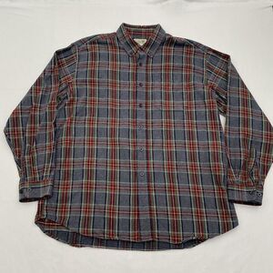 LL Bean Flannel Shirt Mens XL Gray Red Plaid Button Down Long Sleeve Cotton
