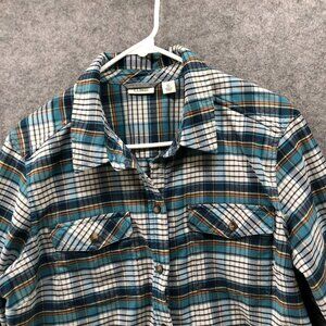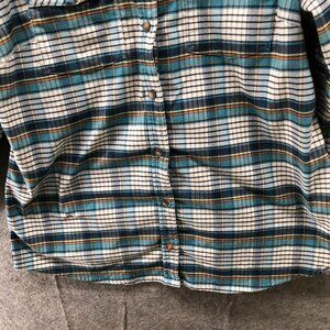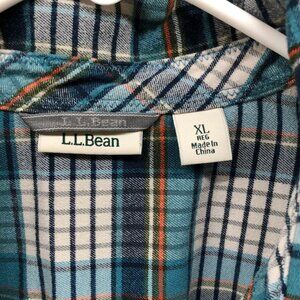 L.L. Bean Flannel Shirt Womens XL Blue White Plaid Teal Long Sleeve