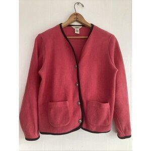 LL Bean Fleece Cardigan Shacket Berry Pink Buttons Pockets Sweater Sz Small