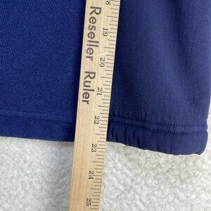 This LL Bean Fleece Jacket is navy blue crafted from polyester fleece, offering both durability and a soft touch. The jacket's has a full zipper closure with 3 zippered pockets. No flaws were noted. This is a Misses Size Small. See photos for measurements.