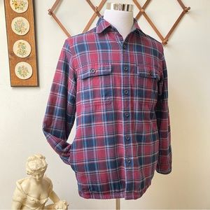 What’s cool? Thick soft comfortable flannel cotton, warm fleece lining, four pockets front, red blue plaid, traditional fit