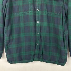 LL Bean Fleece Lined Flannel Shirt Jacket Shacket Green Plaid 298189 Mens Size M