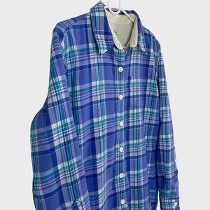 L.L. Bean Fleece Lined Flannel Shirt Jacket Blue Plaid Button-Up Long Sleeve Shacket
