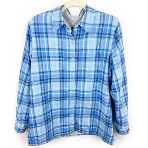 L.L. Bean Fleece Lined Flannel shirt Jacket plaid blue Shacket size: M