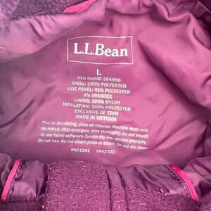 L.L. Bean Fleece Lined Primaloft Jacket Womens Large Purple Quilted Lightweight