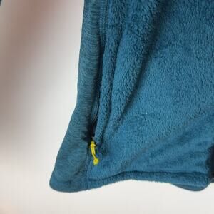 Gently Used L.L. Bean Full Zip Fleece Jacket. This is a men’s XL. Mostly a blue / green color with lighter almost neon green accents on the collar and zipper. Reflective LL Bean logo on the chest pocket. Soft and warm jacket! Care tag is removed but I’d assume polyester or a poly blend.