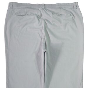 Good used condition, with no stains or tears. Comfortable cropped pants, in a very pale grey color. Has an elastic waistband and the fabric has some stretch. Has 4 pockets and a zip fly/button closure.