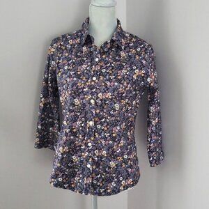 L.L Bean daisy pattern shirt features wrinkle-free fabric and three-quarter sleeves is a practical yet stylish choice that combines ease of care with a touch of floral charm. Slightly fitted, 100% cotton.