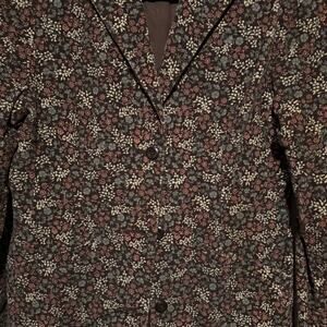 L.L. Bean Floral Corduroy Blazer Brown Front Button Pocket Long Sleeve Sz 8