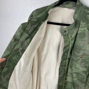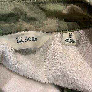 L.L Bean Freeport Camo Jacket Coat Sherpa Lined Warm Trench Moto Button Up M