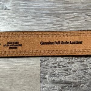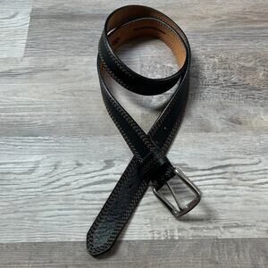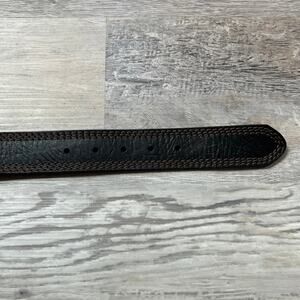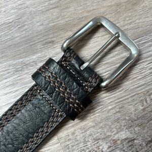 Classic L.L. Bean belt crafted from genuine full grain leather. Black with brown contrast stitching and sturdy metal buckle. Marked size 42. Made in USA.