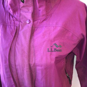 L.L. Bean - waterproof, breathable and durable Gore-Tex jacket. Gore-Tex has serious waterproof protection from the elements and is highly breathable and allows moisture vapor to escape. This jacket has superior ventilation with core vents and underarm zipper vents. Front zipper closure with velcro overlay. Interior pockets as well as arm pocket. Logo is embroidered on the front. Gore-Tex logo is embroidered on the left sleeve. Cuffs have elastic as well as Velcro. Cinch cord at hem.