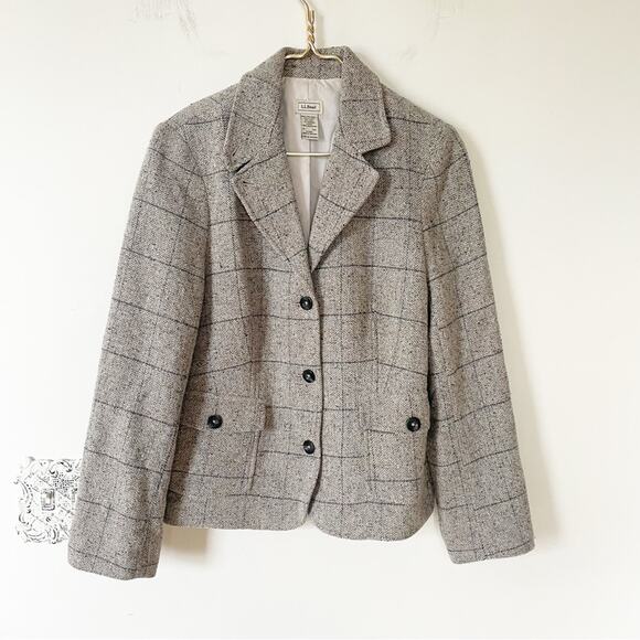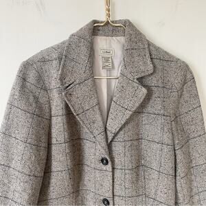 L.L. Bean Galway Gray Windowpane Plaid Wool Blazer Jacket