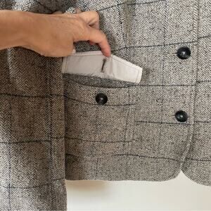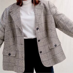 L.L. Bean Galway Gray Windowpane Plaid Wool Blazer Jacket M