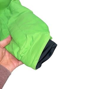 L.L. Bean Girl's Thinsulate Winter Coat / Anorak Jacket in Size Medium (10-12 Ys). Green Nylon Outer, Hooded, Fleece Lined with Pink Fleece. Style Number 283666. Very minor smudging on the sleeve openings as shown in the close ups. Otherwise in great condition.
