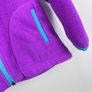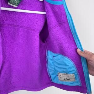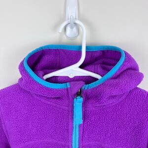 L.L. Bean Girls Purple Hooded Fleece Jacket. Toddler girl size 2T. Full zip coat is a perfect extra layer for cool days. Super soft and cozy fleece. Elasticized blue binding and zipper. Hand warmer pockets. Reflective triangle in the back. Great for preschool, the playground, or out running errands!