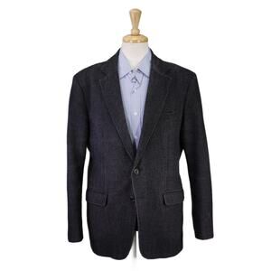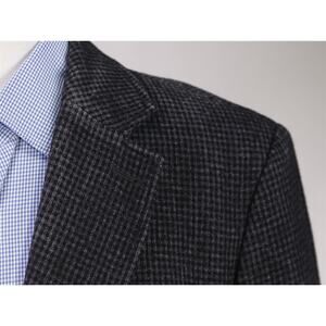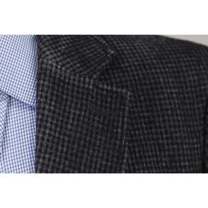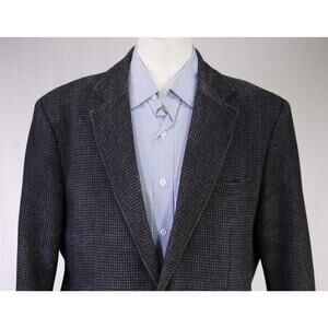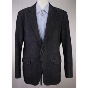 LL Bean Gray Black Gingham Check Knit Woven Blazer Jacket 42R